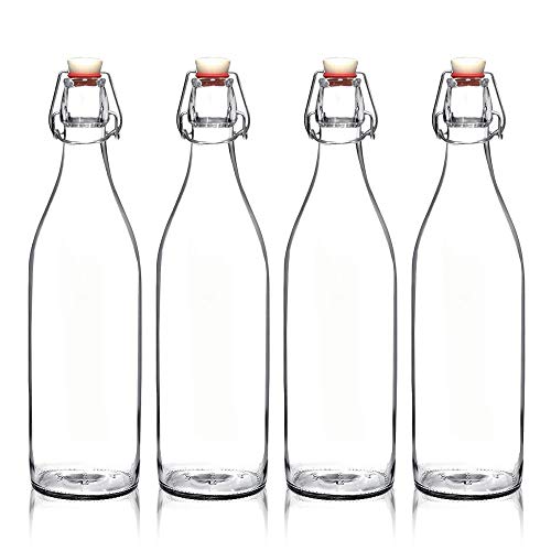 Customer reviews Seacoast Clear Glass Bottle with Swing Top Stopper, 33.75 Oz Round Pack of 4